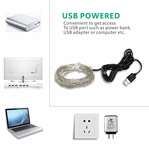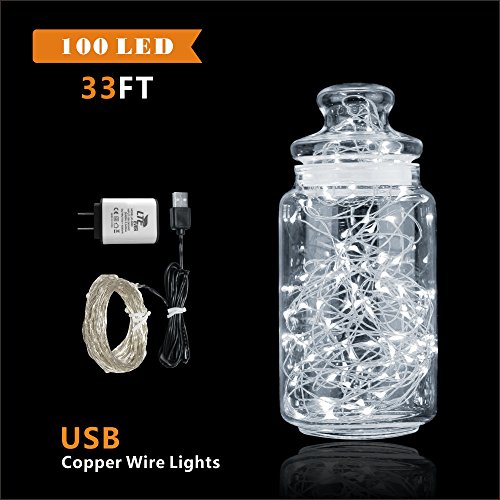 LED String Lights 33 ft with 100 LEDs, LTE Waterproof Decorative Lights USB Powered for Party, Wedding, DIY, Holiday Decoration Daylight White