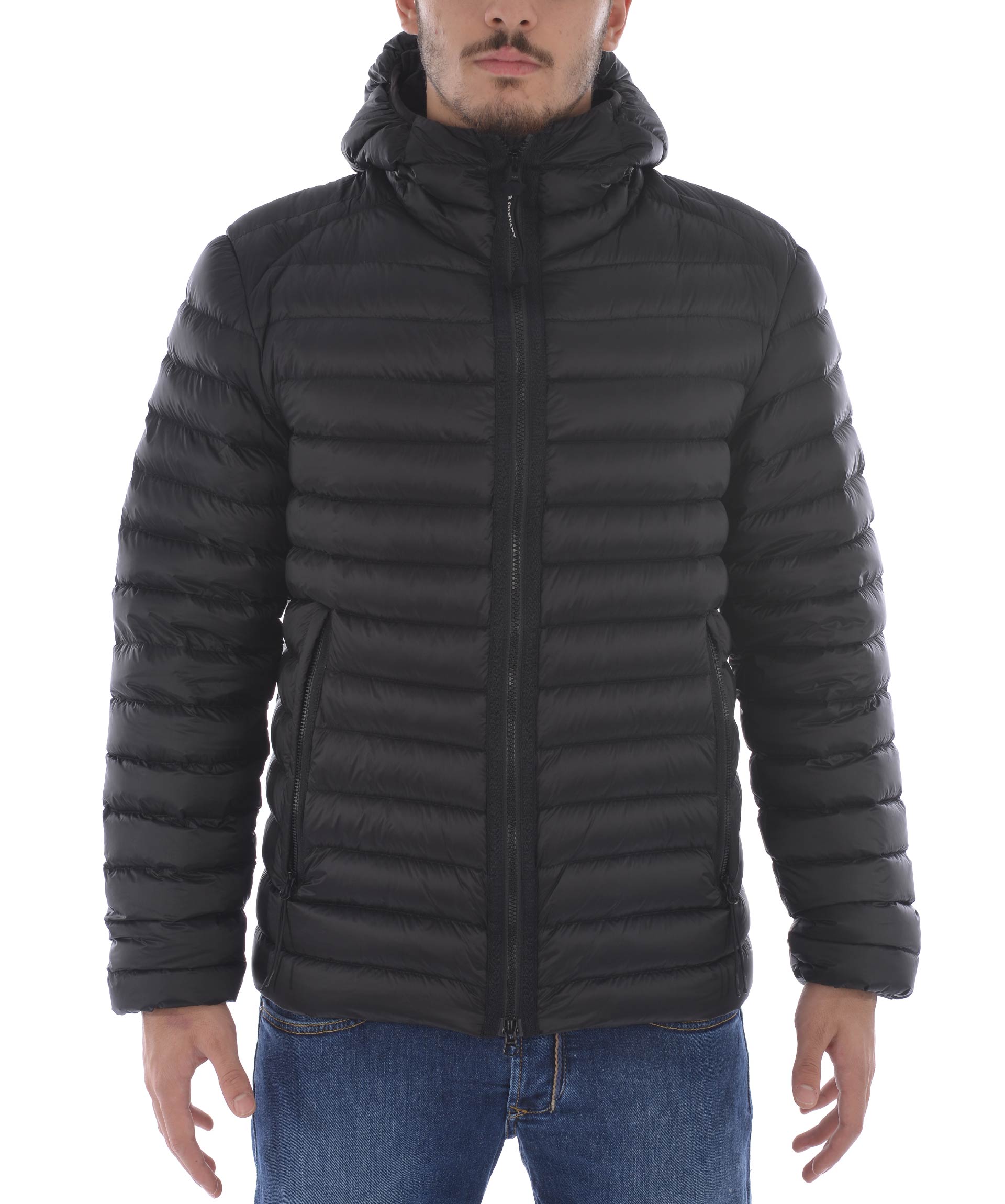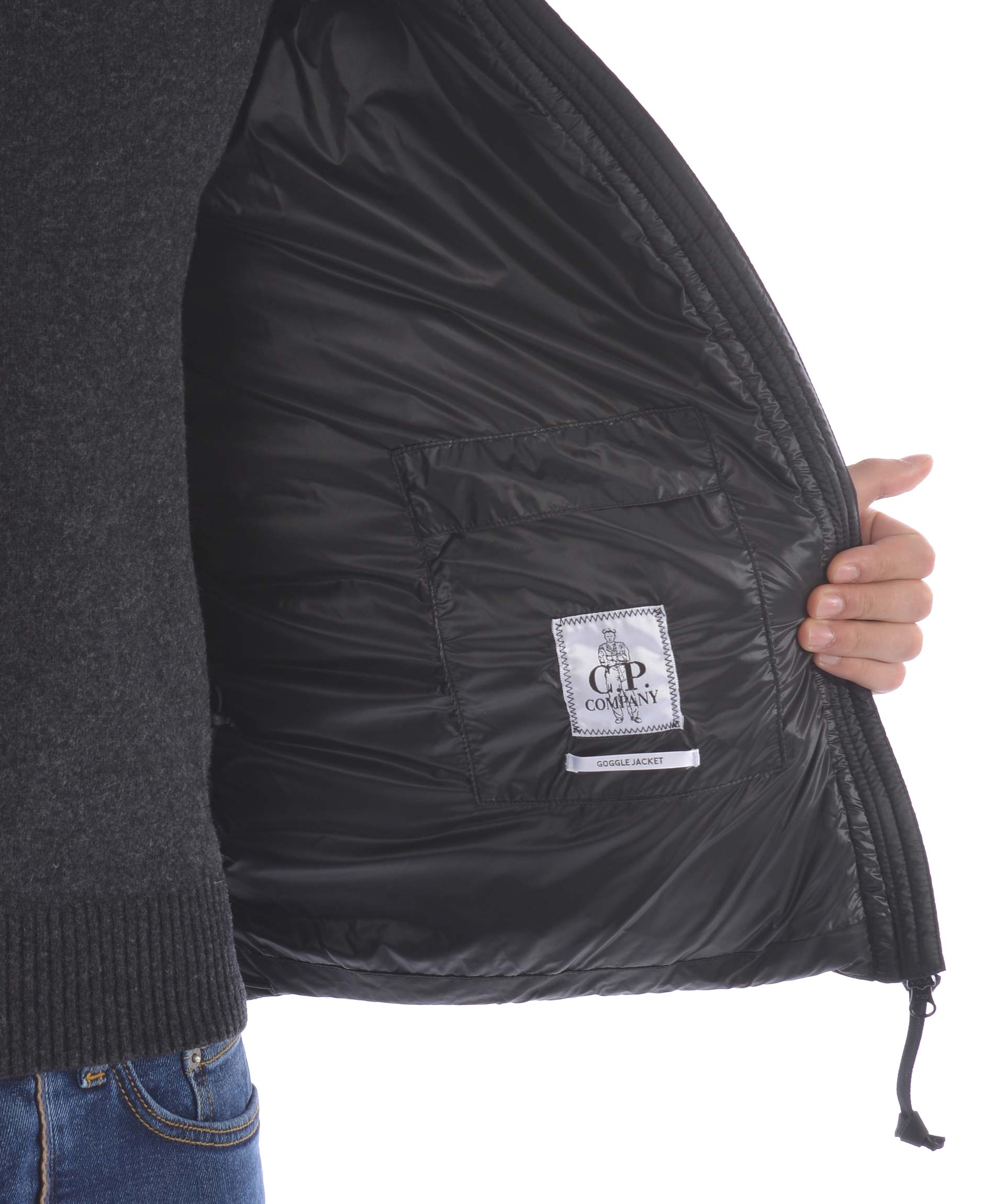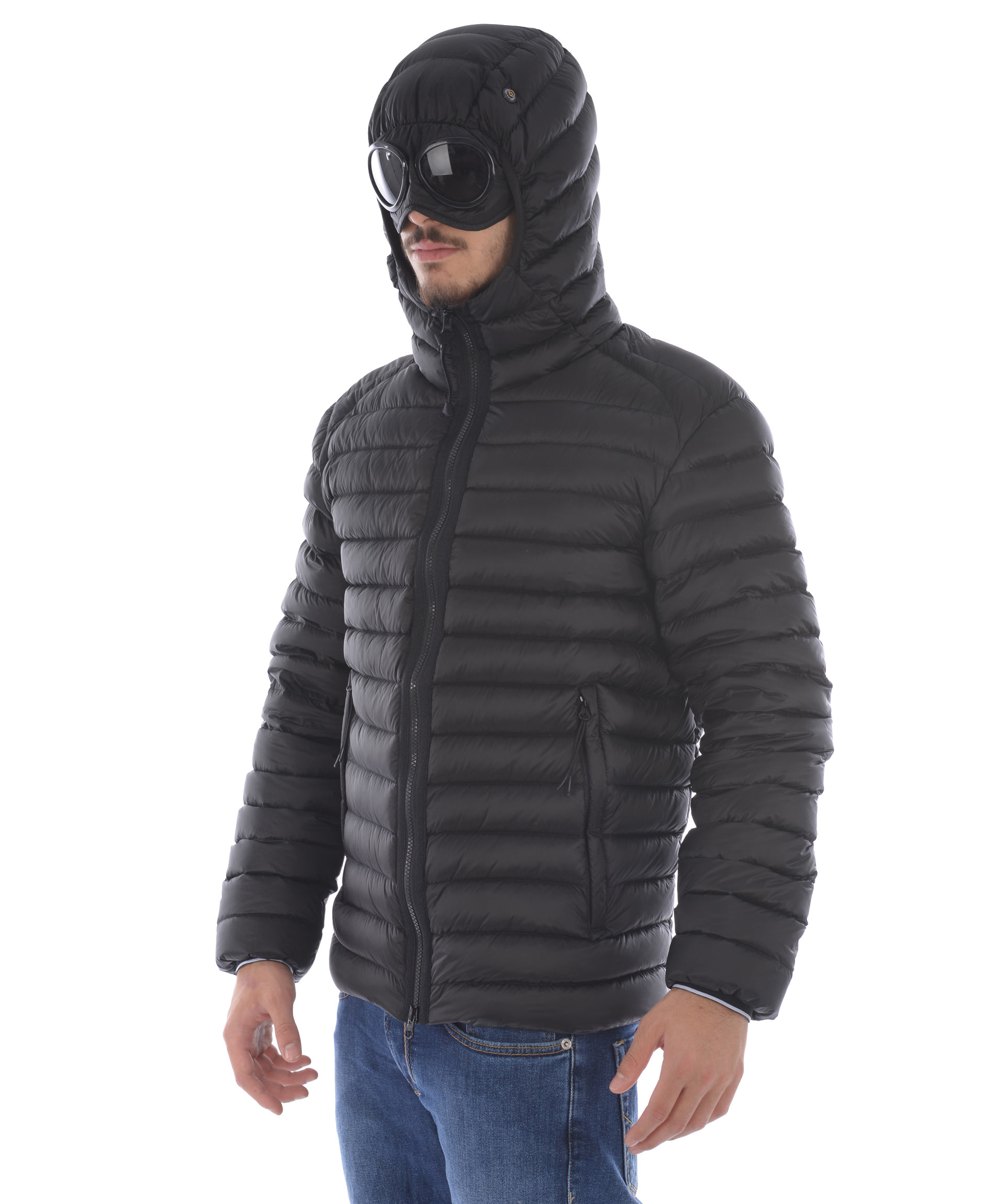 Piumino leggero C.P. Company in nylon trapuntato Nero. Imbottito con piume d'oca. Cappuccio fisso con coulisse e lenti non removibili. Chiusura frontale con zip. Tasche frontali con zip.