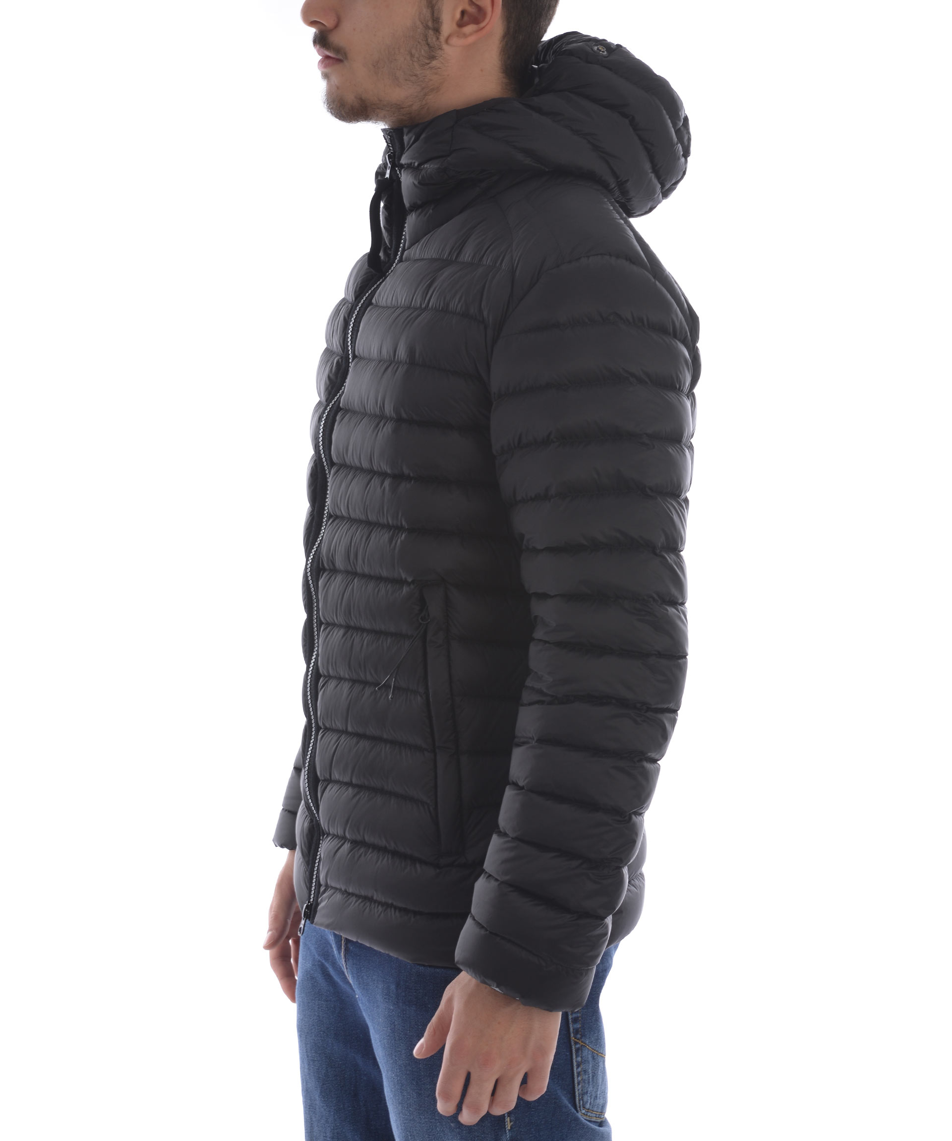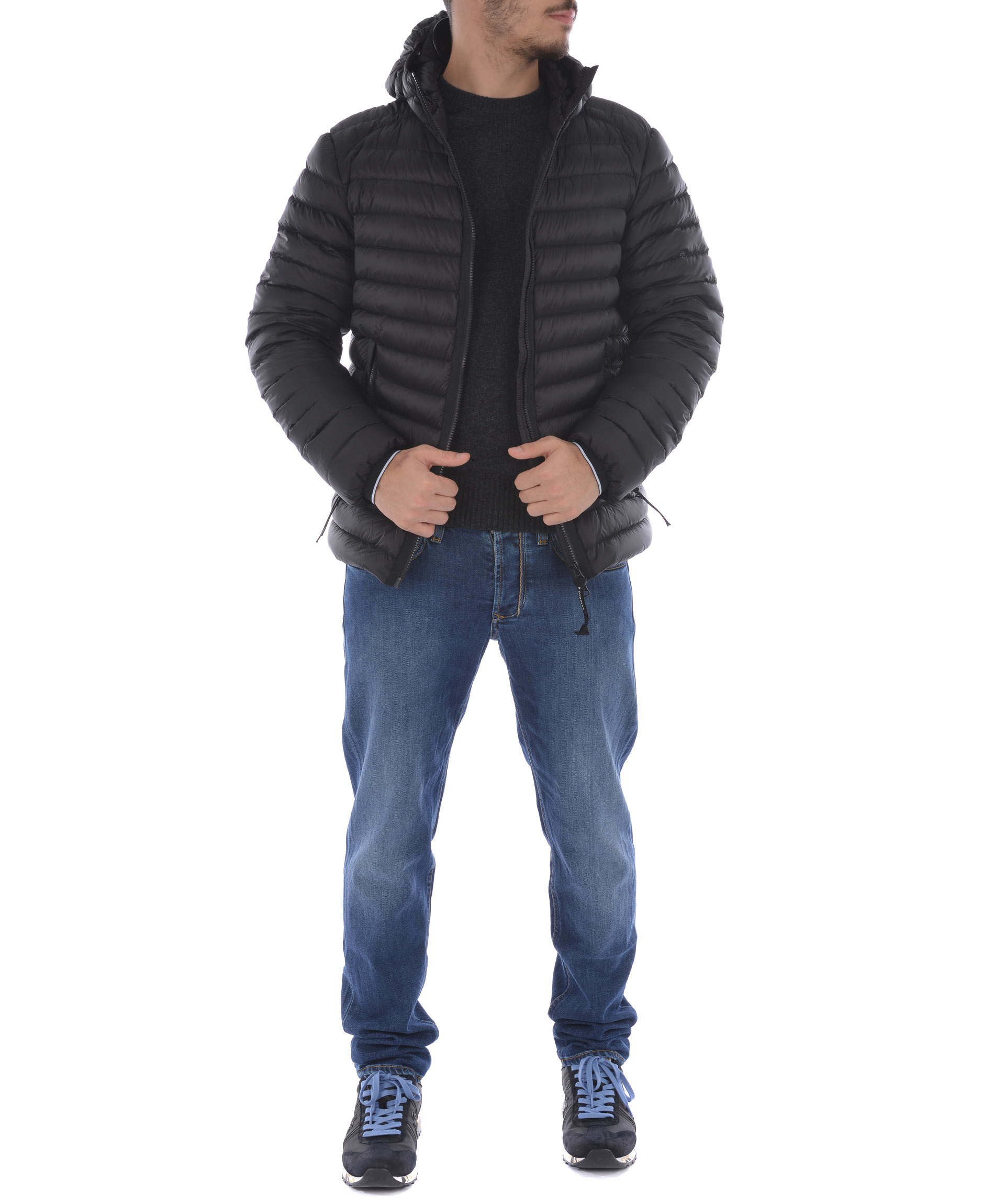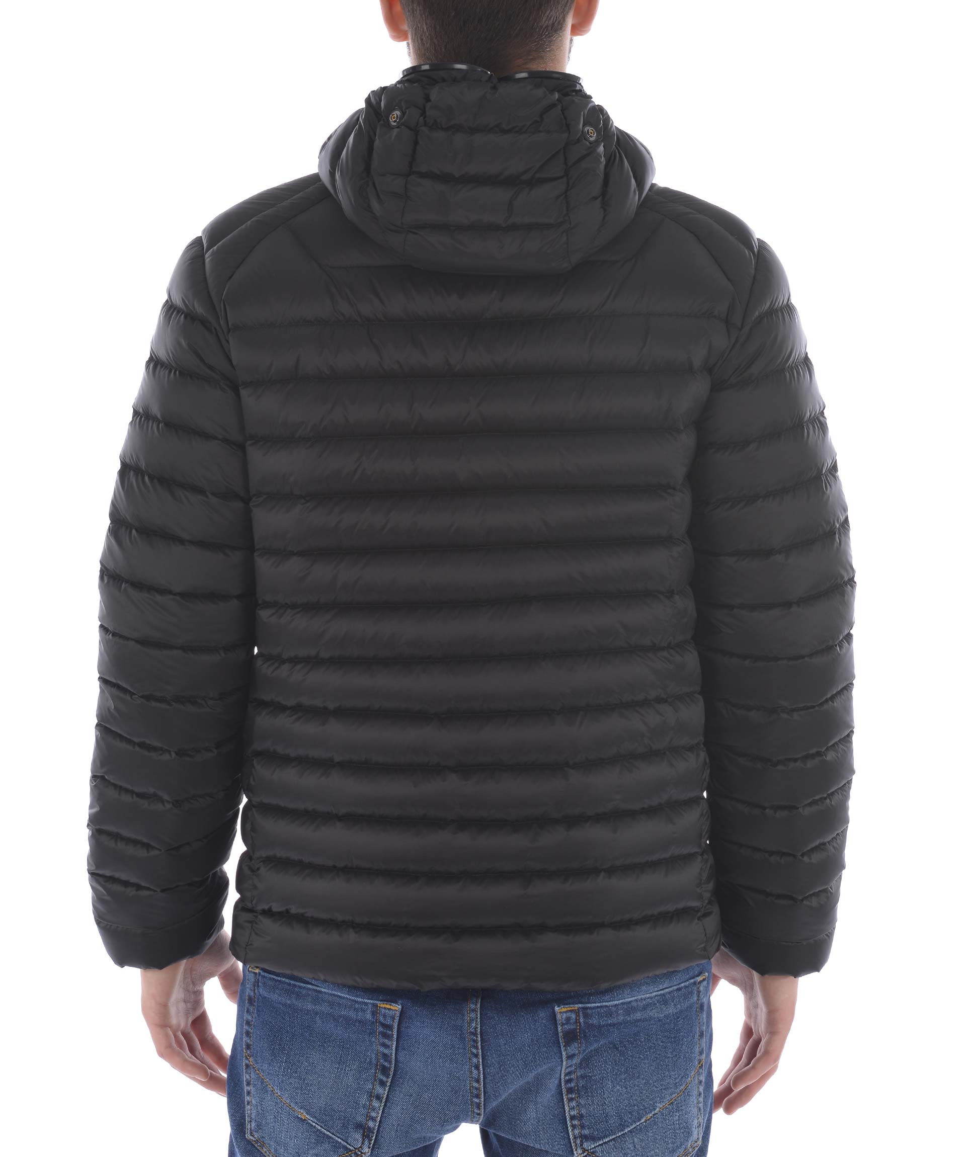 Piumino leggero C.P. Company in nylon trapuntato Nero. Imbottito con piume d'oca. Cappuccio fisso con coulisse e lenti non removibili. Chiusura frontale con zip. Tasche frontali con zip.