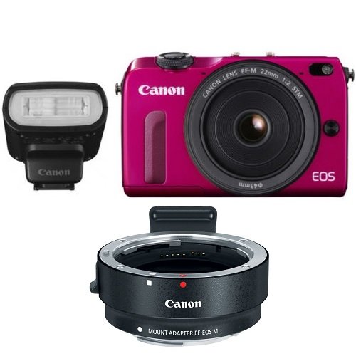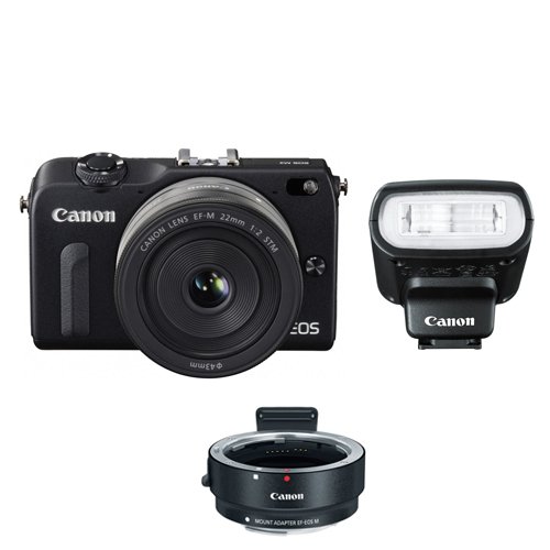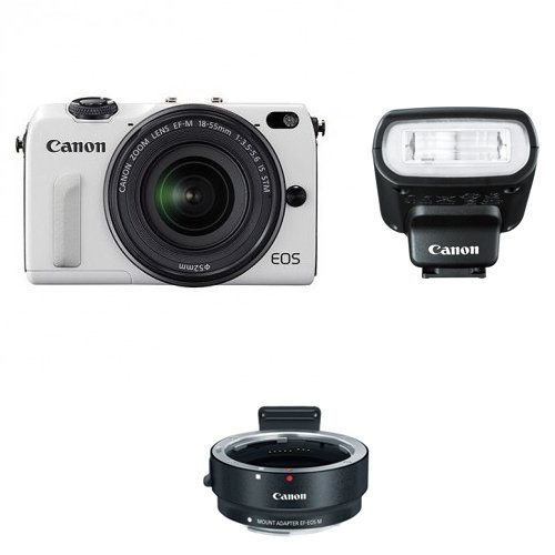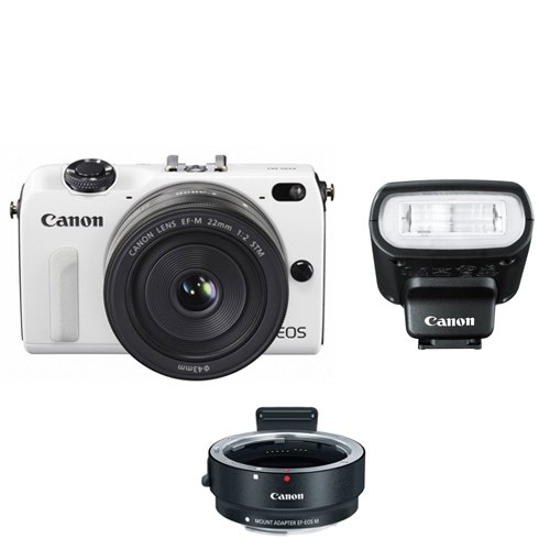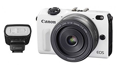 Canon EOS M2 18.0 MP Digital Camera with EF-M 22MM f/2 STM Lens (White) The second generation in Canon's mirrorless interchangeable line of cameras, the EOS M2 makes only a few tweaks to the original model. A new hybrid CMOS sensor allows for greatly improved auto focus. The addition of Wi-Fi allows for wireless picture sharing. And some minor changes to the buttons and body allow the advanced amateur better control of the camera.Feature
