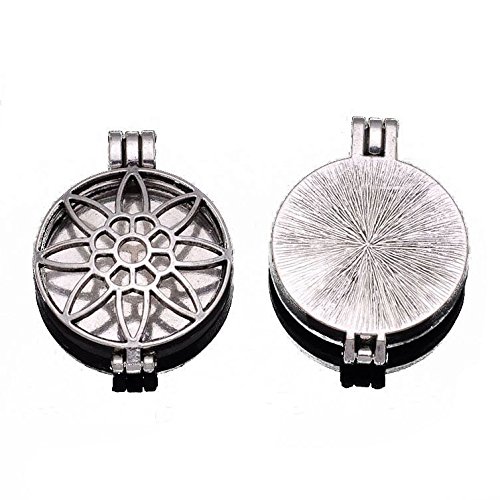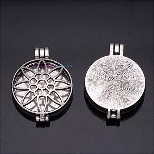 Antique Silver-tone Round Filigree Locket Pendant for DIY Jewelry 10pcs