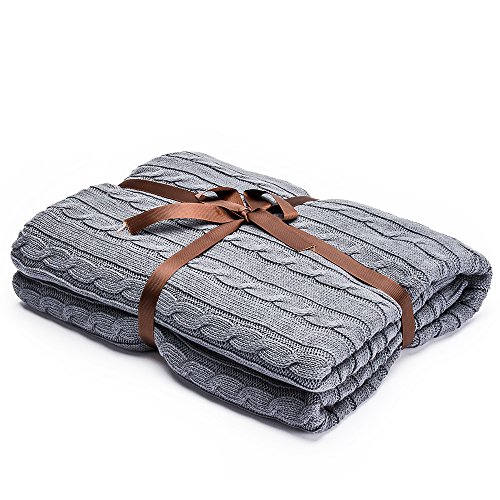 Prosshop Crocheted Blanket Handmade Super Soft Warm Twist Cotton Cable Knitting Throw Sleeping Cover Blanket Rug for Kids or Adults Bedroom Sofa/Bed/Couch/Car/ Quilt Living Room/ Office (Light Grey)