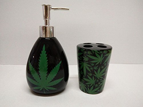 Royal Bath Novelty Mary Jane Marijuana Leaf 2 Piece Ceramic Bath Set: 1 Lotion Pump and 1 Toothbrush Holder