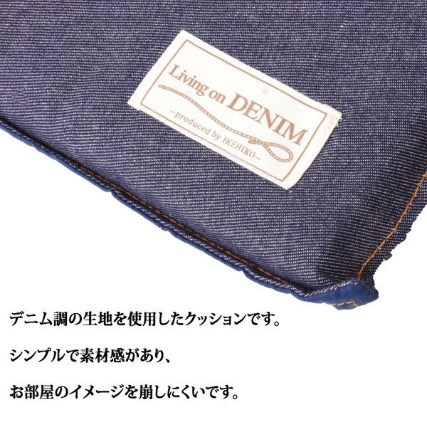 デニム調の生地を使用したクッションです。ベンチシート型のダイニングにもピッタリの商品です。お部屋の雰囲気を崩さずにご使用いただけます。汚れが気になった際は手洗いでお手入れもできるためいつでも清潔にご使用いただけます。