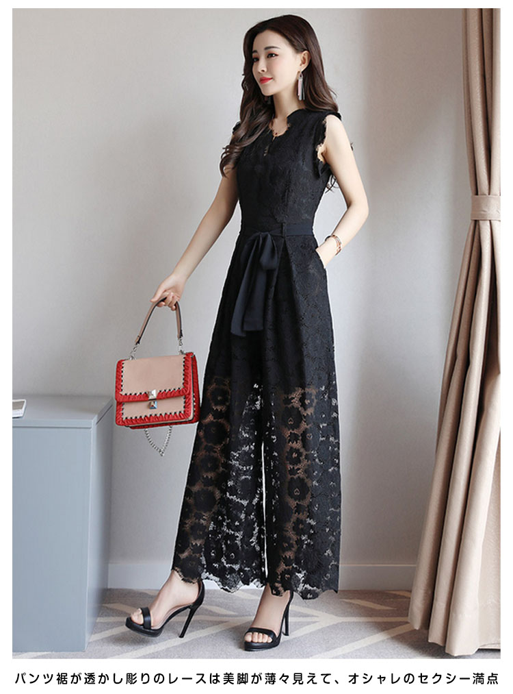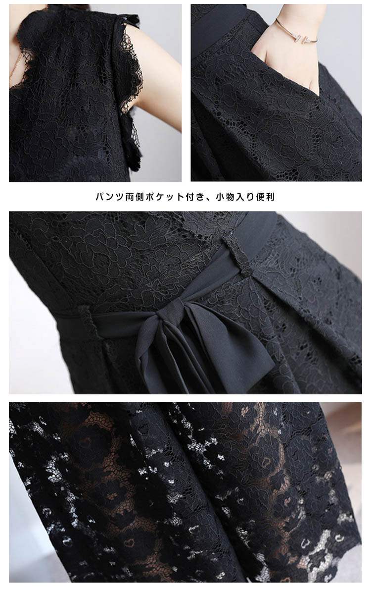 | シンプルで大人っぽい雰囲気のオールインワン。ハイウエスとトリポンのデザインで、高くて細りボディラインが出る。パンツ裾が透かし彫りのレースは美脚が薄々見えて、オシャレのセクシー満点。優れた生地を用いって、柔らかく通気性に富み、着心地良い。女性たちの永遠のテーマ「着やせ」を完璧に演出できるアイテム。 | |