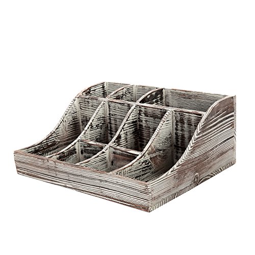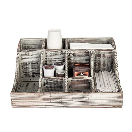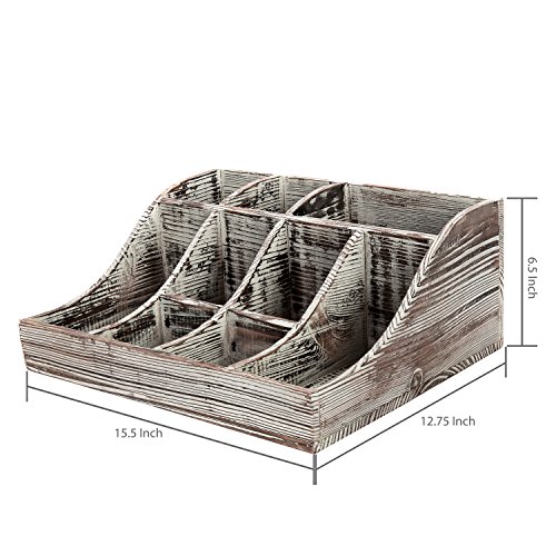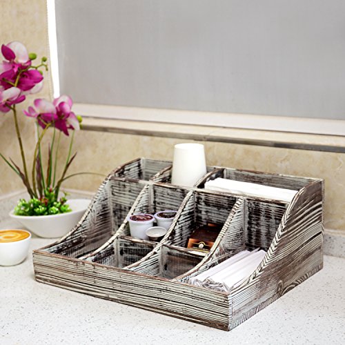 Studio : MyGift Publisher : MyGift Product Description Organize and store your kitchen supplies all in one easy to manage place with this 9-compartment condiment caddy. Featuring 3 tall, 2 rectangular and 4 square compartments, you can easily store coffee and tea supplies, spices, condiments and so much more on your kitchen countertop or in an office setting. A rustic wooden construct and torched wood finish allow you to easily incorporate this organizer into any space. With its multi-purpose use you'd could even use it to store makeup, cosmetics, nail polish, tools, or arts and crafts items. **Official MyGift® product** Condiments and accessories not included. Approximate Dimensions (in inches): 6.5 H X 15.5 W X 12.75 D. 0 |