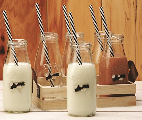 - Title : Circleware Dairy Antique Glass Milk Drink Bottles with Strong Reusable Plastic Straws and Wooden Tray, 10 Ounce, 13 Piece Set, 6 Glass Bottles, 6 Straws 1 Wooden Tray, Limited Edition Glassware Serveware Drinkware