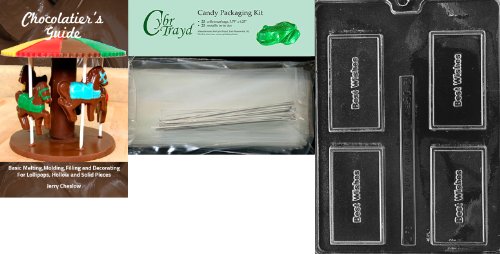 Cybrtrayd Best Wishes Business Card Chocolate Candy Mold with Chocolatier's Bundle, Includes 25 Cello Bags and 25 Silver Twist Ties