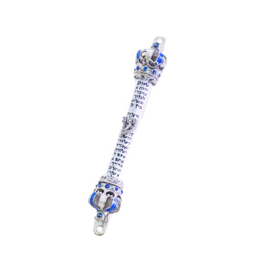 Gold Plated Pewter Jewish Israel 5.6 Inch Crown Mezuzah Case And Scroll In Different Colors (Silver Blue)