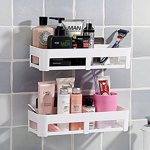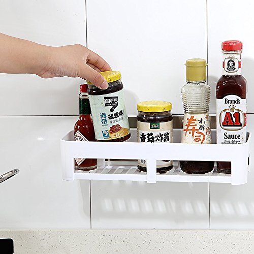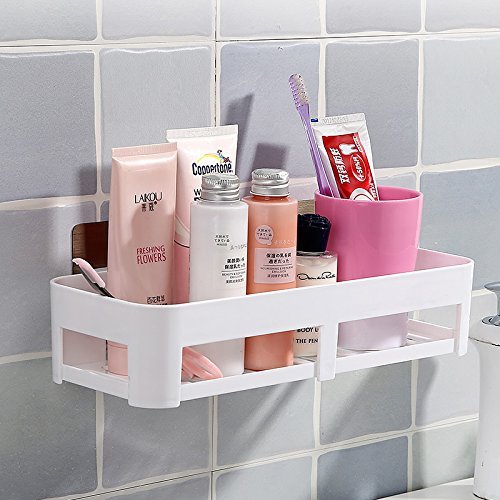 1 Bathroom Wall Storage Shelf White,Space Saving,Wall Foating Shelve Magic Sticker,Reusable,Bathroom Kitchen Corner Wall Storage Rack,Plastic Racks, Shelves By ADM-LC. (Oblong)