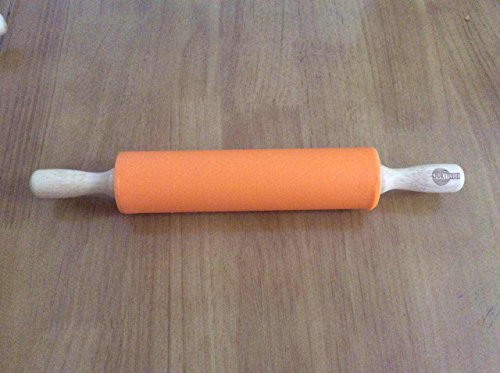 JUKITOO THE BEST SELLING Silicone Rolling Pin Non-stick Surface Wooden Handle Rolling Pin, Silicone Surface Rolling Pin, Wooden Rolling Pin Handle for Rolling Dough, Baking,12 inch (Orange)