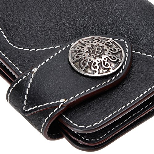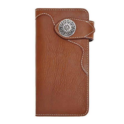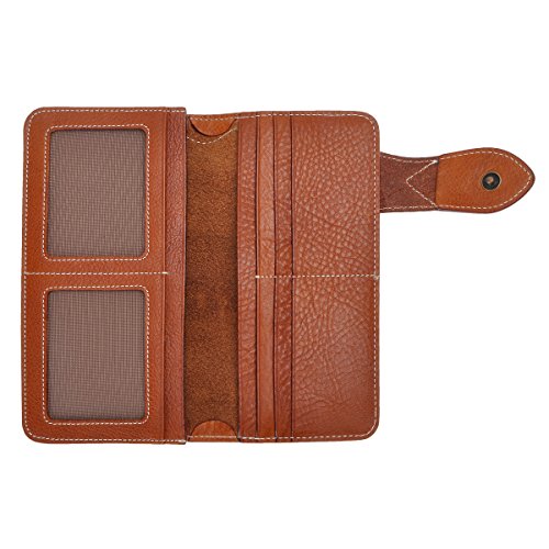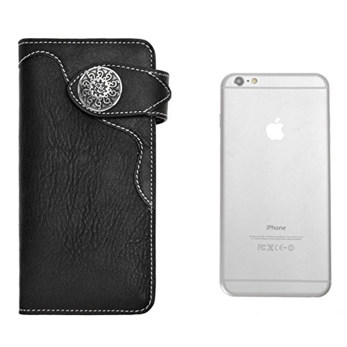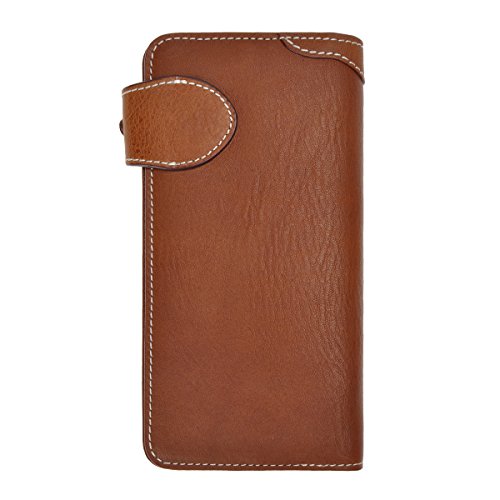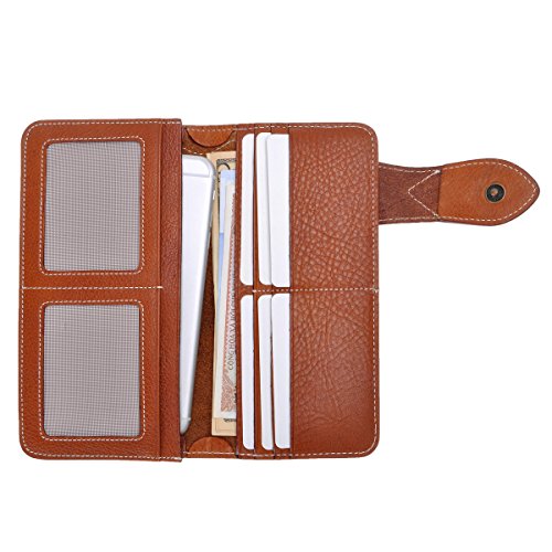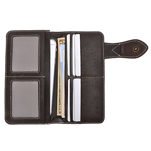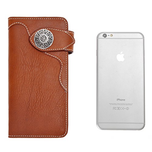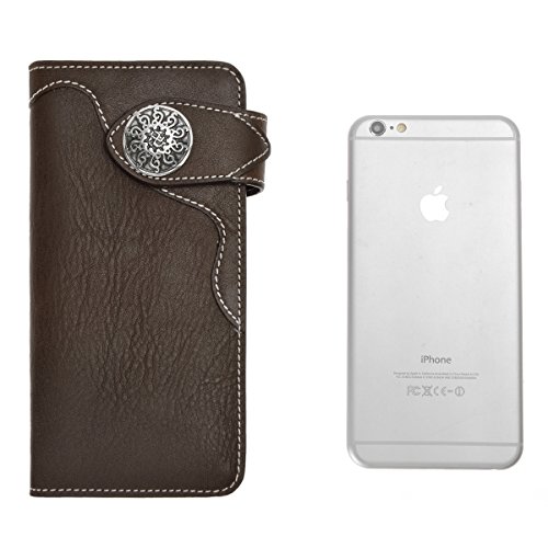 This genuine leather wallet features soft and durable leather, retro mix hardware, multi pockets and simplicity design. The more you use the better leather will be. There are 6 credit cards slots, 2 ID window for ID card or photo and 2 long slots for cash, receipts, tickets or iPhone 6 Plus. This is the keep-forever wallet you've been searching. You can also carry it as a clutch!