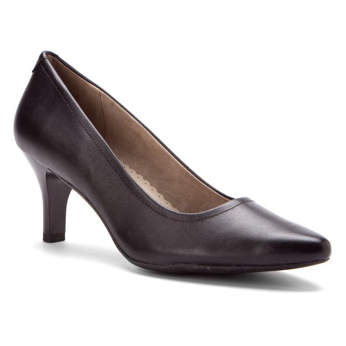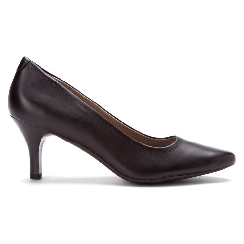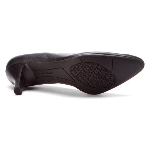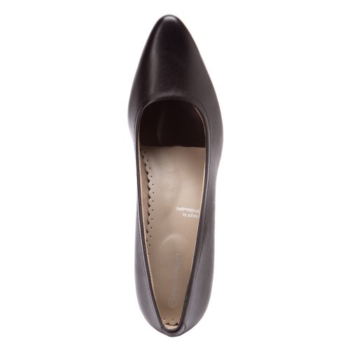 Chart a stylish course with the Rockport Pilot Path pump. A sleek silhouette in leather or suede complements your dress or business attire, while the knitted fabric lining offers a soft, smooth interior. Perforated for cool breathability, the leather footbed of this women's dress shoe absorbs moisture for a healthy foot environment. Sachetto construction provides flexibility and slipper-like comfort, and adiPRENE Comfort Technology absorbs shock and returns energy. The Rockport Pilot Path pump is finished with a gracefully tapered, stacked heel and a durable rubber sole to carry you with confidence.Feature