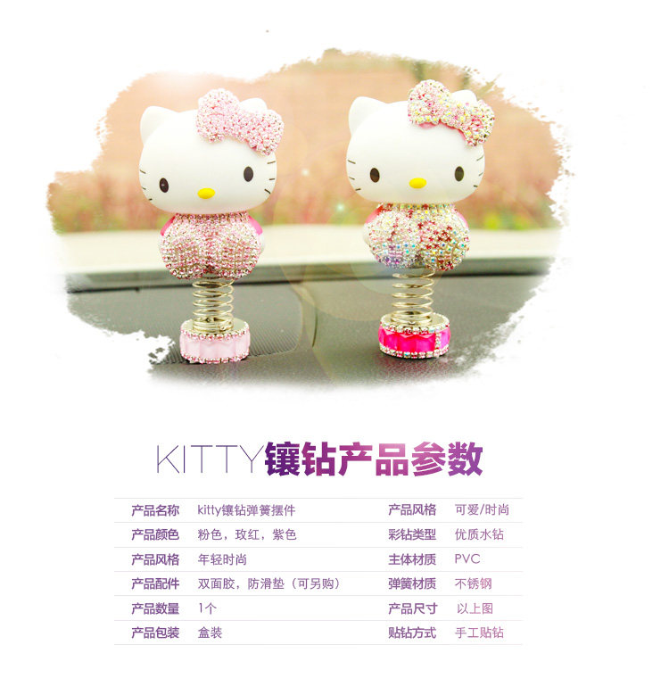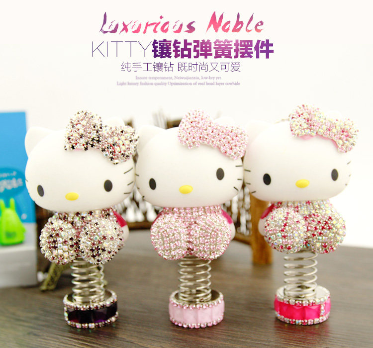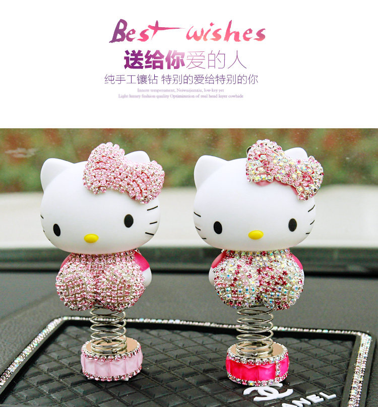 女士hello kitty凯蒂猫镶钻kt猫汽车摆件 车内装饰品摇头公仔摆件