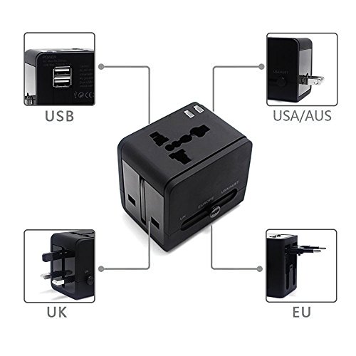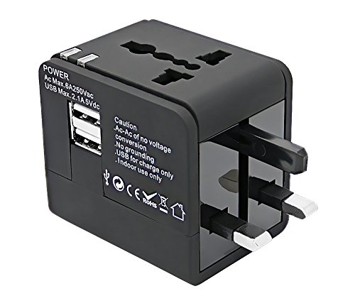 CRAZY AL'S CA613(2.1A) Worldwide Universal International Travel Adapter, with 2 USB Charging Ports & Universal AC Socket,suitable for Apple, Samsung, Sony, Blackberry, HTC,etc. Black