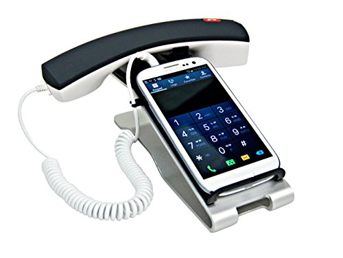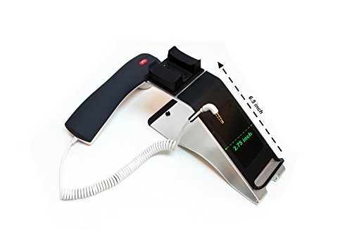 Fits virtually most wireless phones using 3.5 mm headphone plugs Watch a screen while you are talking on the phone. 4 silicone non-slip pads to prevent stand from drifting. You can easily check and input new data, browse the net while you are on the phone. Reduces radiation emitting from mobile phone Secures wireless phone vertically and horizontally on the non-slip pad. Product Dimension: 2.75 x 8 x 3 inch (without handset). Included: Handset, handset Cable (3.5 mm), Aluminum Stand. Phone not included.Feature