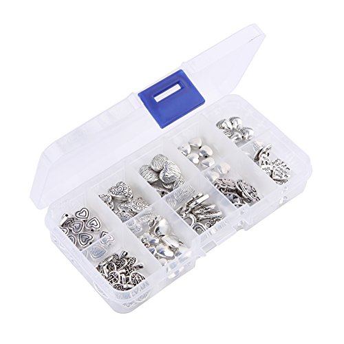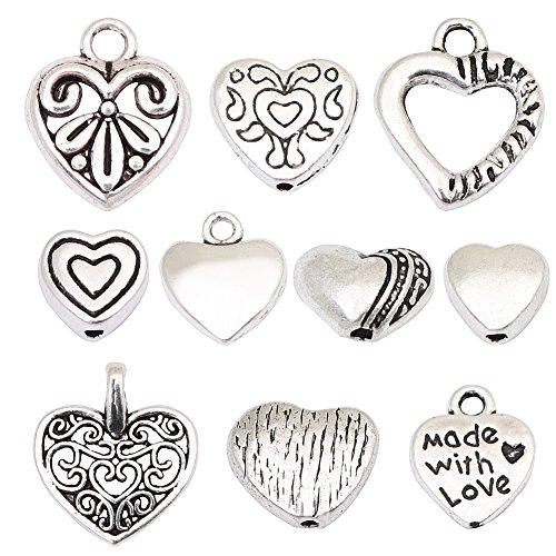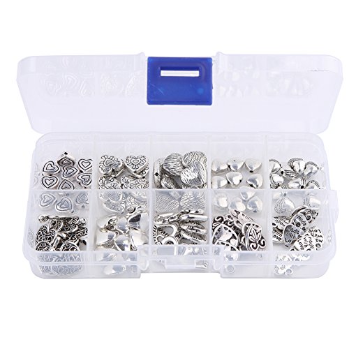 HYBEADS 100pcs Tibetan Silver Sweet Heart Spacer Charm Beads Mix Lot Heart Beads Box Set Assortment