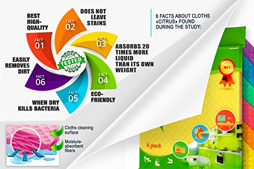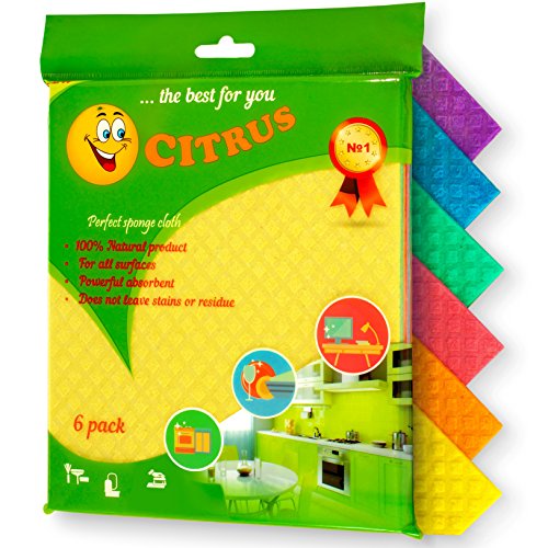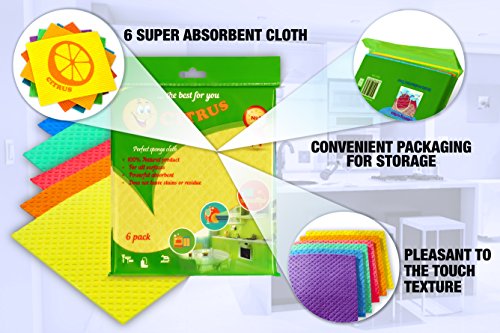 The Best Reusable Eco Friendly Dish Cloths From Natural Materials | Cellulose Sponge Cloths Multi-use and Effective for Kitchen or Wet Cleaning in House | Related to Wash cloths and Dish rags | 6 Pack