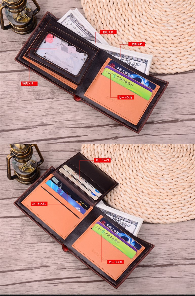 商品の種類:メンズ財布 材質:高品質なPU色:ブルー、ブラック、グレー、コーヒーサイズ:11*9.5*1cm内部仕様:お札入れ*2、カード入れ*5、写真入れ*1商品内容:1*財布、1*専用ボックスボックスのサイズについて:短財布のボックスのサイズ:13*10*3cm長財布ボックスのサイズ:20*10*3cm[商品紹介]紳士用の折りたたみ財布です。カード収納は多いと大容量で、小銭入れも有り、コインも入れます。シンプルかつ、男性的でスタイリッシュなデザイン。高品質なPUを使用しているので、丈夫で長持ちです。綺麗な財布の専用ボックスが付きます。プレゼントに適用です。財布 二つ折り財布 メンズ 二つ折り 薄い 薄型 革 大容量 シンプル カード 20代 30代 40代 50代 革 カード多い おしゃれ レザー 欧米風レザー 牛革 男性 紳士 サイフ 通勤通学 ビジネス ギフト