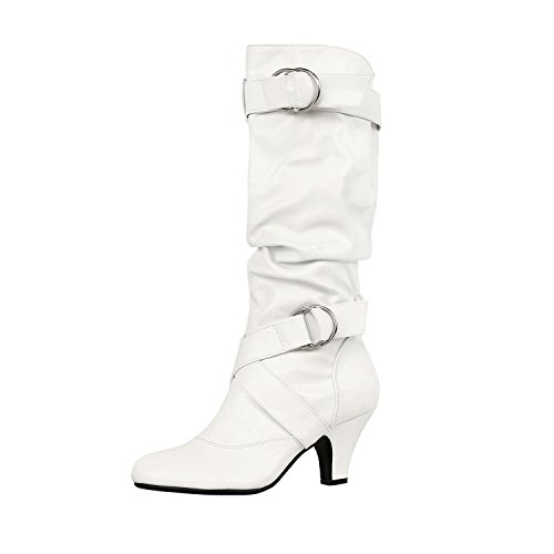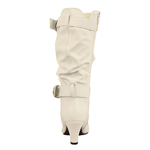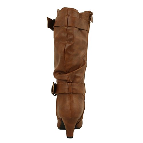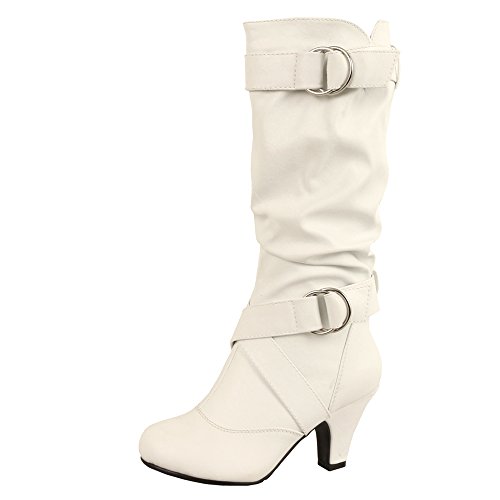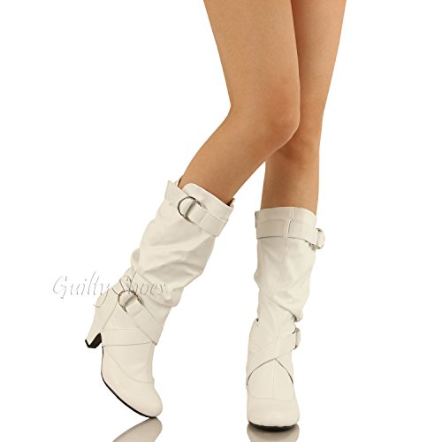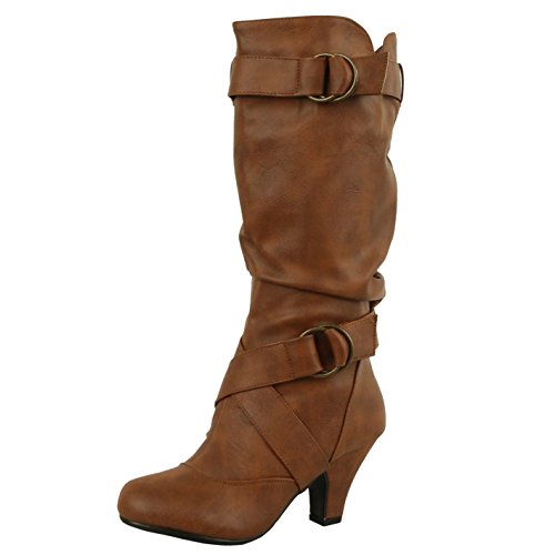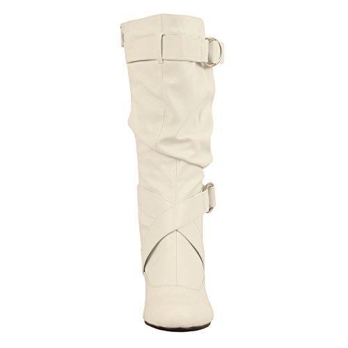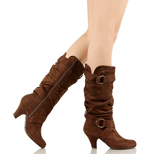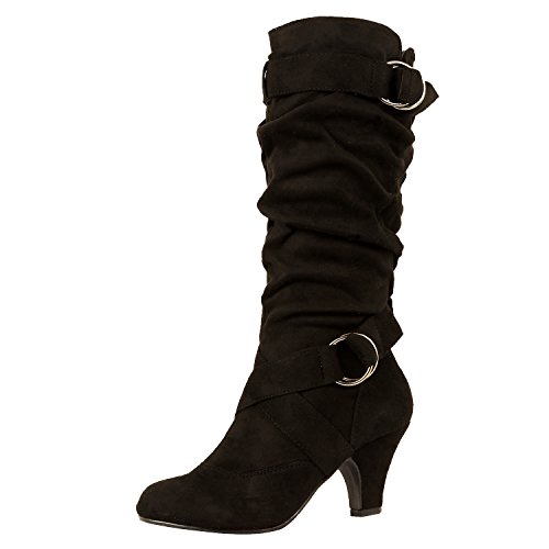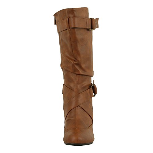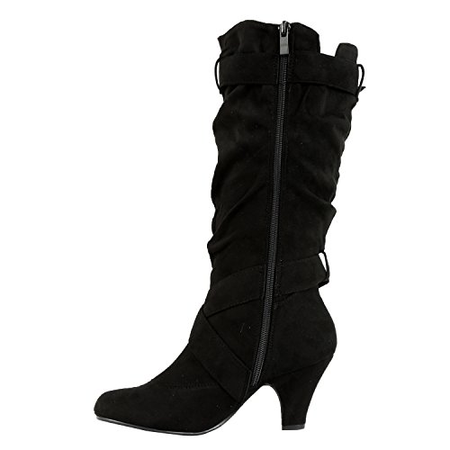 Guilty Shoes Womens Winter Mid Calf Strappy Slouchy Buckle Low Kitten Heel Fashion Boots