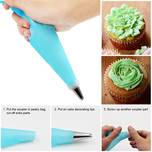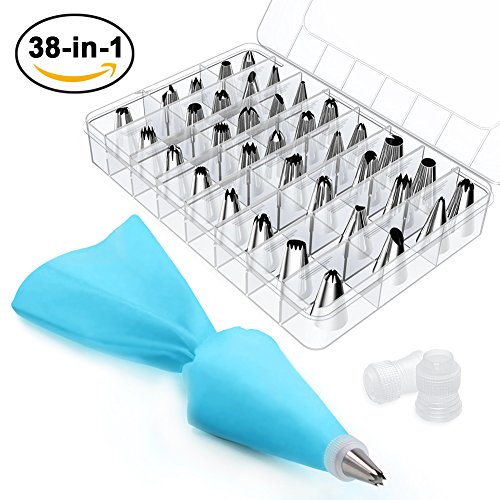 - PERFECT BAKING KIT - 36 pcs tips, 2 couplers, 1 TPU pastry bag, get all cake decorating supplies you need in one time, simply point and squeeze to create beautiful flowers on your cakes, cupcakes