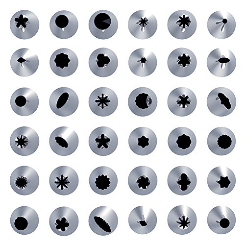 - GET CREATIVE EASILY - Our 36pcs professional russian icing nozzles will help you to create butter-cream roses, lilies, stars, buttons, grass, rosettes, stars, tulips and more 36 style