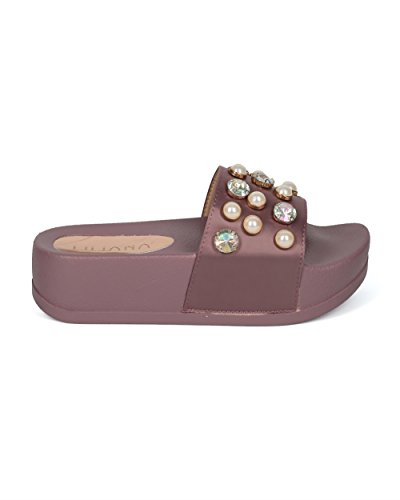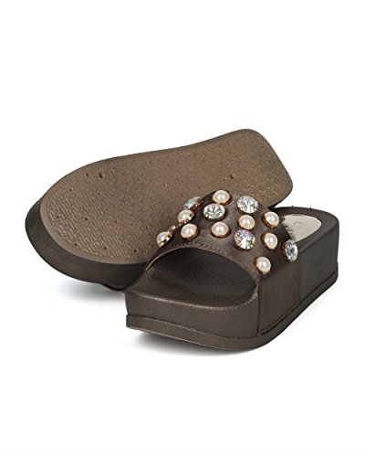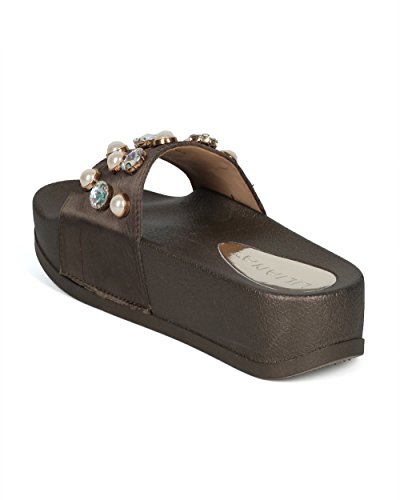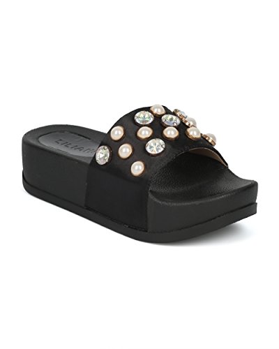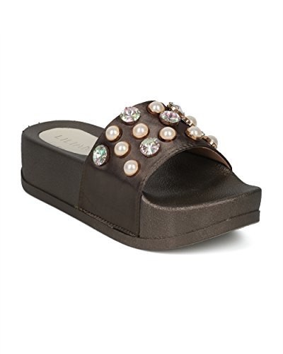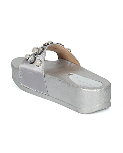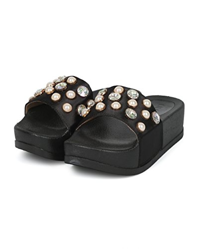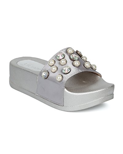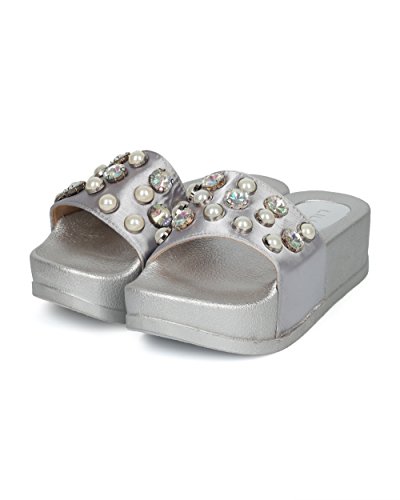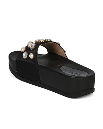 (Alrisco)/Women's/Boots/DIRECT FROM USA/Alrisco Women Satin Faux Pearl and Gems Platform Footbed Slide - HG26 by Liliana Collection