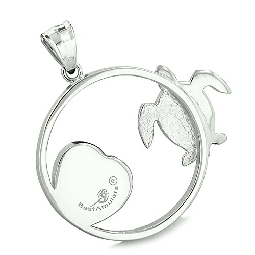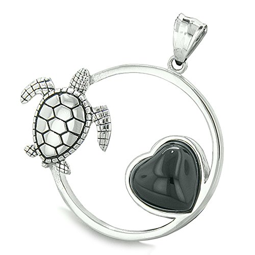 -. Feature : Best Amulets® Collection. Amulet Cute Sea Turtle Magic Circle Heart Medallion Positive Powers Simulated Black Onyx Pendant on 18" Necklace / Amulet is made from Stainless Steel. / Holds Very Cute Simulated Black Onyx Cabachon.