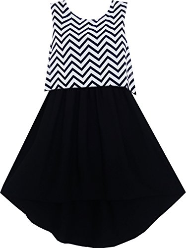 -. Title : Sunny Fashion Girls Dress Lace To Chiffon Striped Black White Tied Waist