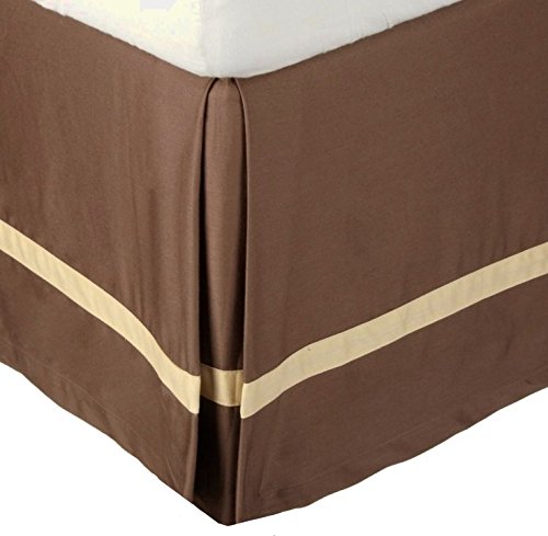 MARRIKAS 300TC Cotton QUEEN Bed Skirt SOLID CHOCOLATE WITH HONEY STRIPE