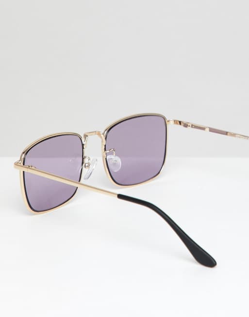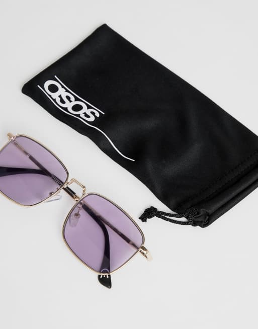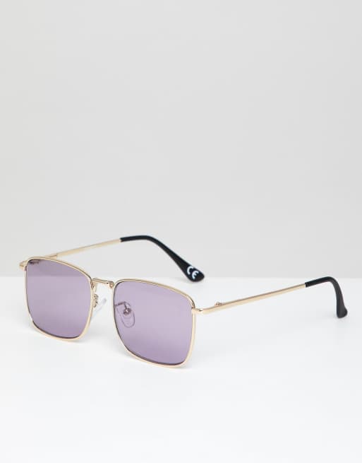 ASOS DESIGN Square Sunglasses In Gold With Lilac Lens