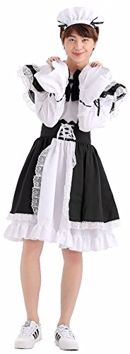 -. Brand : Cohaco -. Color : Black, White -. Department : mens -. Feature : Material : Uniform cloth / Size : US ( Asian ) < Please check the [Clothing Size Chart ] in the Product Description.> / Includes : White Dress, Black Aplon, Headdress, Ribbon Tie and Socks ( Not other accessories and shoes ) -. ProductGroup : Apparel -. ProductTypeName : ADULT_COSTUME -. Title : Cohaco Men's Lovely Maid Costume Black White Dress