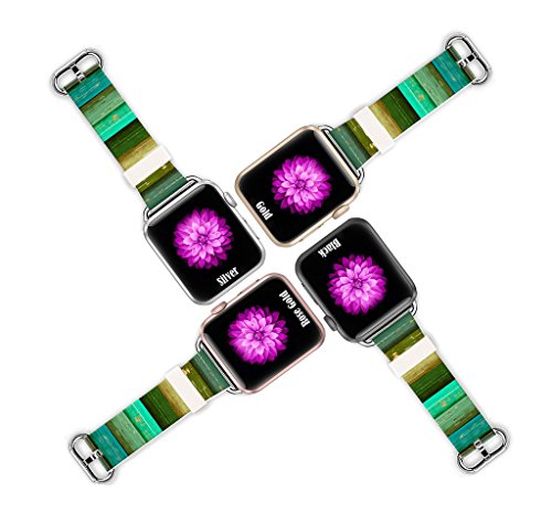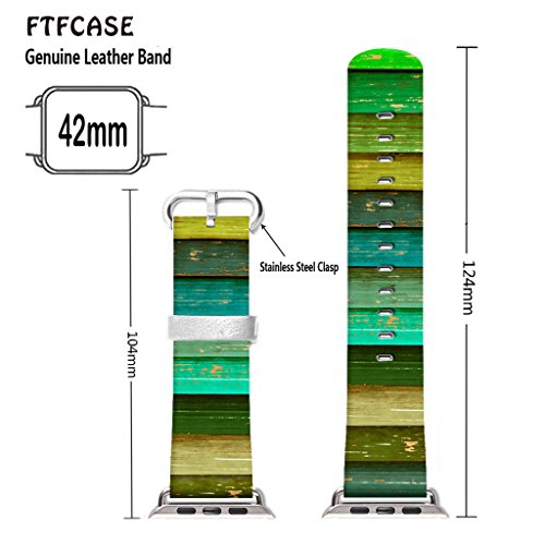 Apple Watch Band 42mm Leather + Stainless Steel Connector iWatch Band Replacement Bracelet Strap for Apple Watch Sport and Edition 42mm - Retro graffiti grass green stripes