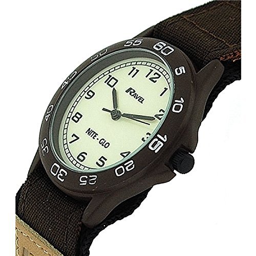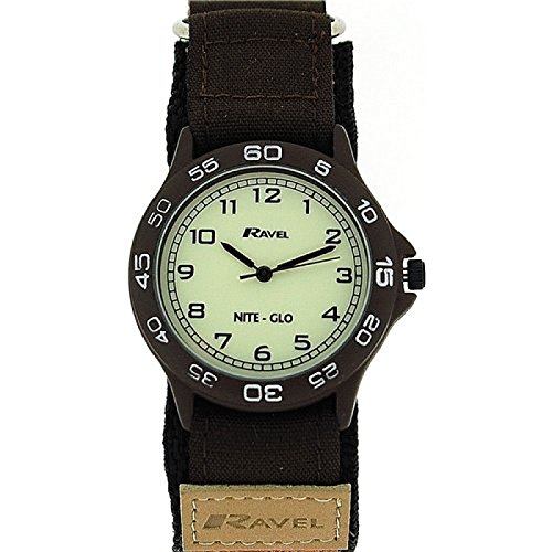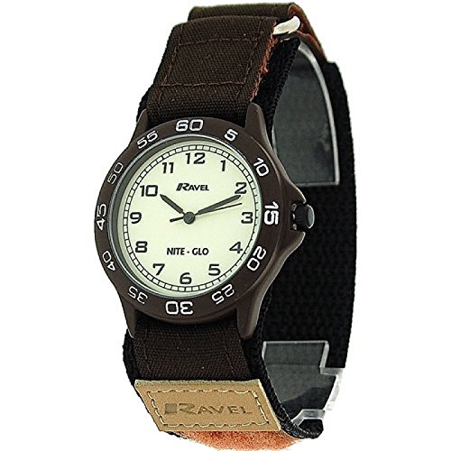 -. Title : Ravel Analogue Boys Brown & Beige Nite-Glo Fabric Velcro Strap Watch R1705.4
