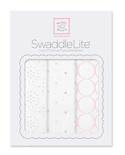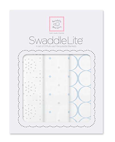 SwaddleLite is a set of 3 Marquisette Swaddling Blankets are breathable, lightweight, 100% cotton blankets designed to keep baby cool in warmer environments. Each blanket comes with our signature 123 Swaddle label with easy how-to-swaddle steps sewn to the edge of the blanket. Marquisette is crafted from cotton that is superior in length, strength, and smoothness to create a very soft and premium quality blanket that will get softer with every wash. Sized at 46 x 46 inches (116 x 116 cm), our swaddling blankets are larger than typical receiving blankets, and they have a multitude of uses beyond swaddling; such as a privacy throw when breastfeeding, play mat for tummy time, or as a shield over the stroller to protect from the sun or cool breeze. Coordinates with a variety of our quality baby essentials. Machine wash gentle.Feature