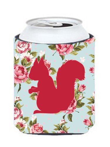 Squirrel Shabby Chic Blue Roses Can or Bottle Beverage Insulator Hugger BB1119