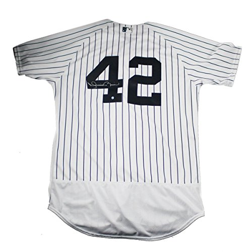 Mariano Rivera Signed New York Yankees Authentic Flex Base Pinstripe Jersey (Signed On Back)