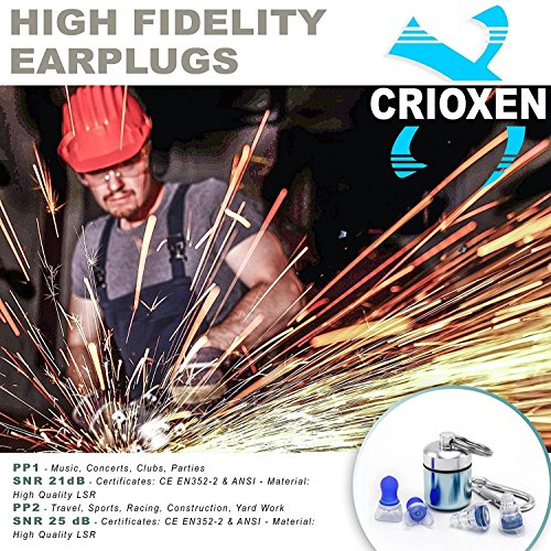 - QUALITY GUARANTEE: Provides 100% protection from appropriate sounds when worn fully inserted in your ear canals. Made according to CE EN-352-2 and ANSI standards. Crioxen makes the best high-quality earplugs with hypoallergenic silicone.