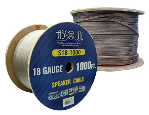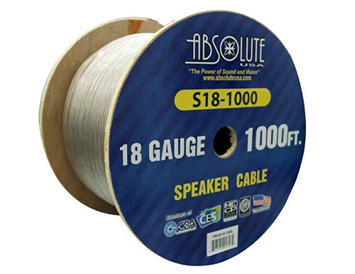 -. Binding : Wireless Phone Accessory -. Brand : Absolute -. EAN : 0811234019931 -. Feature : 18 Gauge 1000 Ft Spool Speaker Wire / PVC ULTRA Flex Insulation and Multi Strand Construction / For the Ultimate Custom Installation / Ultra-Flexible under Hot or Cold temperatures / Wire comes with translucent insulation(see through) -. Label : Absolute USA Inc. -. Manufacturer : Absolute USA Inc. -. Model : S181000 -. MPN : S181000 -. PackageQuantity : 1 -. PartNumber : S181000 -. ProductGroup : Car Audio or Theater -. ProductTypeName : CAR_ELECTRONICS -. Publisher : Absolute USA Inc. -. Studio : Absolute USA Inc. -. Title : Absolute USA S181000 1000-Feet 18 Gauge Spool Speaker Wire -. UPC : 811234019931 -. Warranty : 1 year