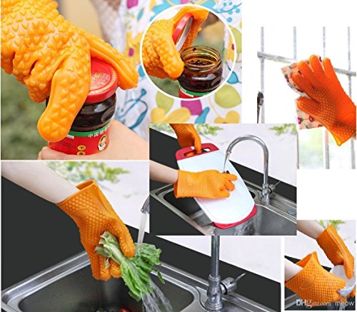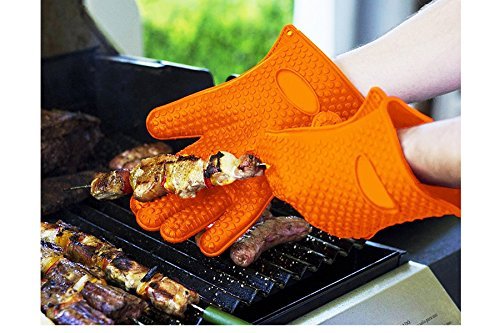 - GRILL GLOVES | Heat Resistant BBQ/Oven Gloves | Waterproof | Silicone Oven Mitts For Grilling | Perfect for cooking, grilling, tossing salads & more! Glove size: 10.8" x 6.9"