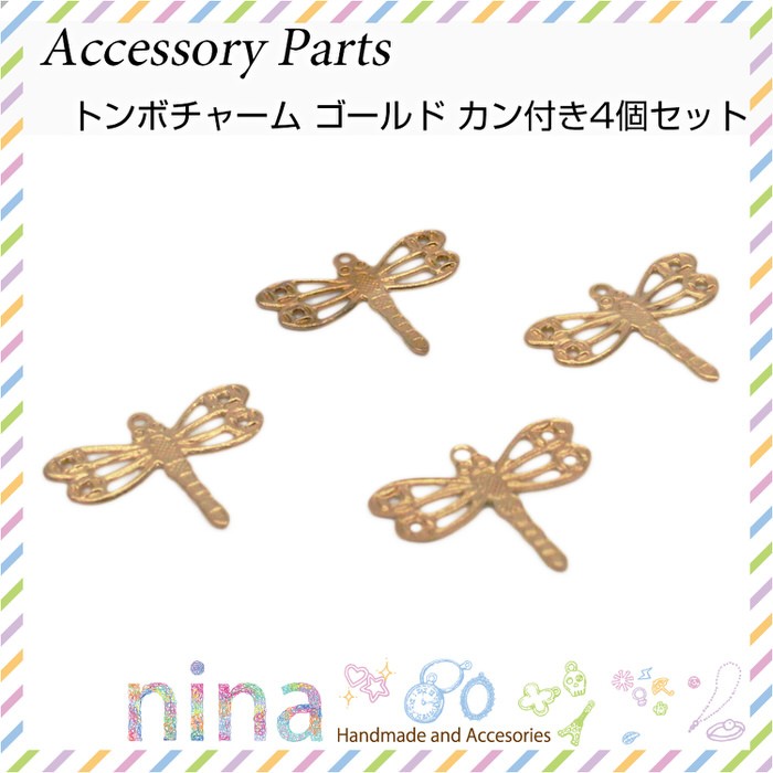 ■商品名:トンボチャーム ゴールド カン付き 4個セット