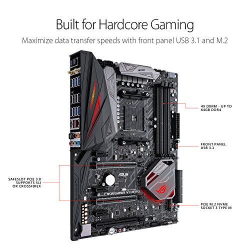 -. Binding : Personal Computers -. Brand : Asus -. Label : Asus -. Manufacturer : Asus -. PackageQuantity : 1 -. ProductGroup : Personal Computer -. ProductTypeName : MOTHERBOARD -. Publisher : Asus -. Studio : Asus -. Title : ASUS ROG Crosshair VI Hero AMD Ryzen AM4 DDR4 M.2 USB 3.1 ATX X370 Motherboard with onboard 802.11AC WIFI and AURA Sync RGB Lighting