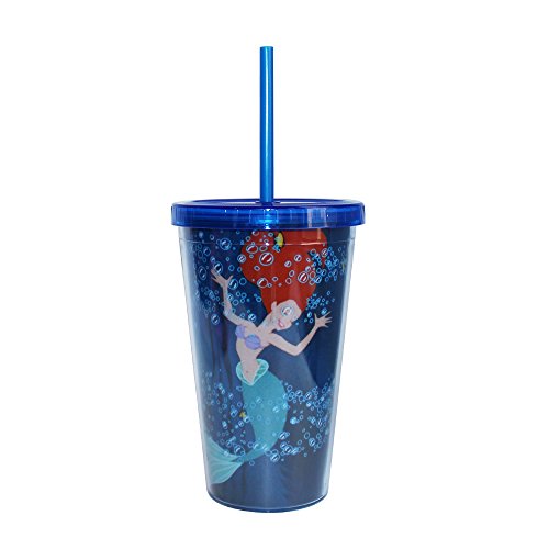 Silver Buffalo DQ74087 Disney Princess Ariel Plastic Cold Cup with Lid and Straw, 16-Ounces