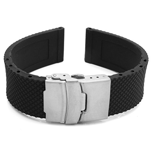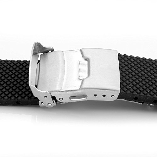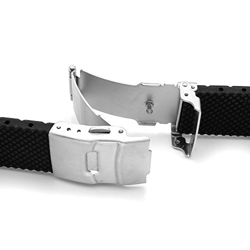 JSDDE Sport Schwarz Silikon Uhr Band Schnalle Wasserdicht Taucheruhr Armband Edelstahl Faltschliesse(Schwarz 20mm)