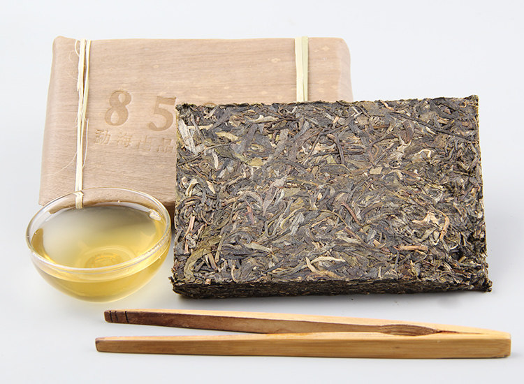 Raw materials used in Yunnan Menghai large leaf drying green tea, the strip more compact, uniform thickness, both positive and negative, inside and outside, are a material, color dark green shiny. Soup color golden, smooth taste, and full of three-dimensional taste, smooth tea slippery.