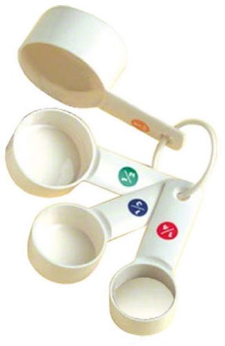 - The cups are plastic with the measurements printed in apparent colored circles on the handles