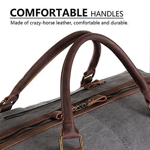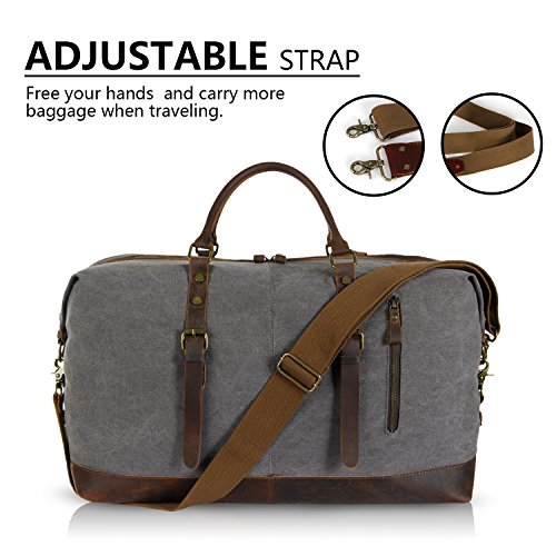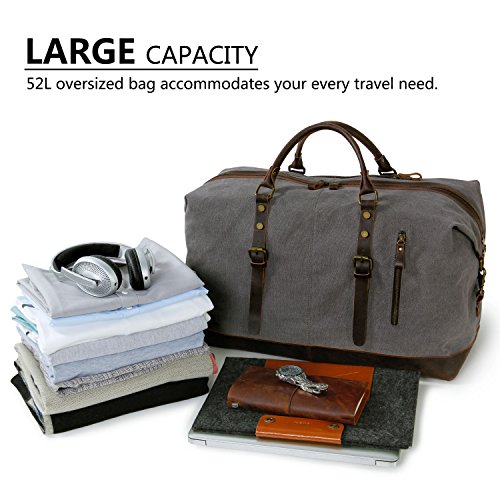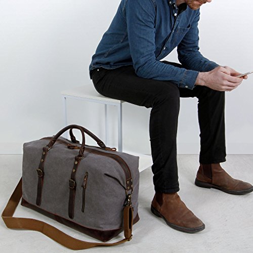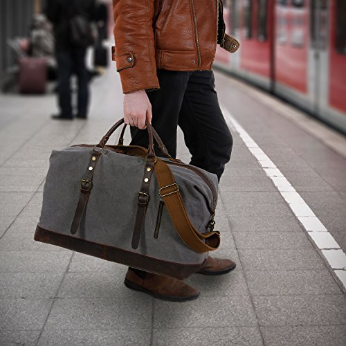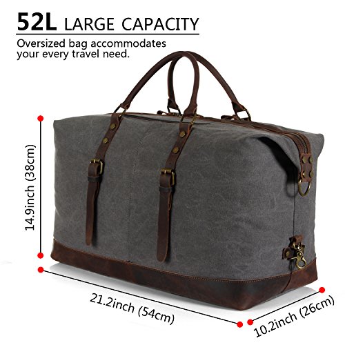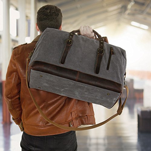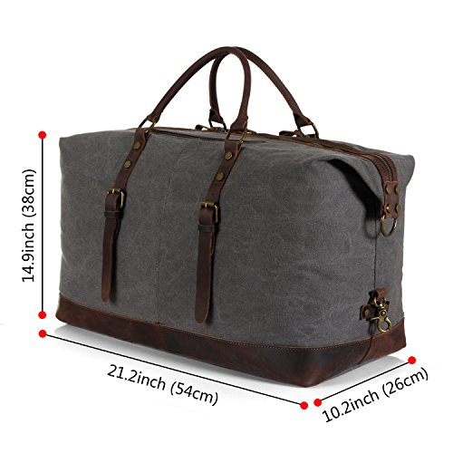 Product Features: All-In-One Lifewit Oversized Vintage Canvas Leather Duffel Bag is your universal bag for all purpose use. Durable canvas and crazy horse leather trim matches perfectly with casual and professional attires. Unisex styling, durability, and large interior space allow the bag to compliment all genders in casual or professional wears, while providing long lasting durability and spacious capacity. Daily Bag Ideal for daily use for transporting laptops, documents, gym wears, professional equipment, and more. Home Storage Perfect home storage for sizeable items such as children’s toys, unworn clothing, sports equipment, electronics, and more. Travel Friendly Foldable and compact; weighs less than most luggage of the same size. Ideal for transporting clothing, electronics, souvenirs, and travel necessities. For a more organized travel experience, the duffle bag can be complemented by the addition of packing cubes. Adjustable Strap Carrying handles and adjustable shoulder strap for easy transport. Shoulder Strap Drop: 25"-55" Crazy-Horse Leather: Crazy-Horse leather features distinguished scar patterns that exudes aged classic retro charm while providing supreme durability for long lasting use. Attentions: 1. Actual color may vary from picture due to computer settings. 2. Air out the bag in a ventilated area to remove leather smell. 3. Excessive exposure to sunlight can fade and dry out leather. 4. Keep the bag in a dry and ventilated place to prevent molding. Package Included: 1 x Leather Weekend Bag 1 x Shoulder Strap 0 |