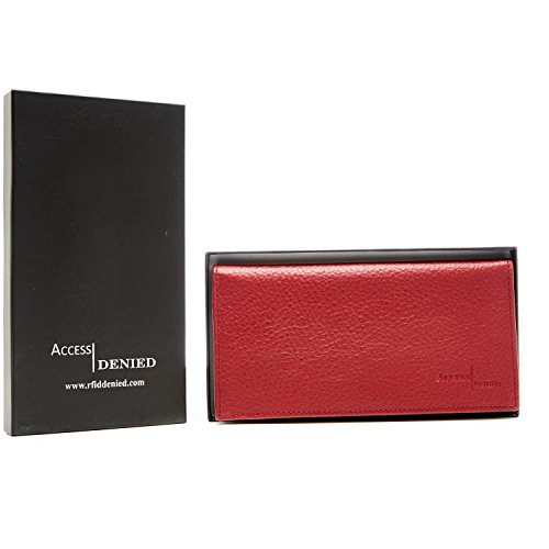 Binding : Apparel Product Description Access Denied RFID Blocking Checkbook Cover in Pebble Grain Leather is designed to securely hold your checkbook and doubles as a credit card holder with 6 RFID blocking credit card slots and a hidden pocket for cash, receipts, additional credit cards, gift cards. The pebble grain leather is durable lightweight and attractive. This Checkbook holder is RFID shielded in and around all pockets and folds. Prevent thieves from remotely accessing (skimming) and reading your credit card account numbers and related private information. Don't become a victim of the silent crime of Electronic Pickpocketing which may lead to identity theft. Protect and lock your RFID chip enhanced credit cards safely within our proprietary RFID blocking technology. Gift box included. Fits top tear standard checkbooks with dimensions of 6 inches Long and 3 inches Wide. 0