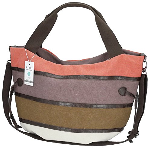 Women's Travel Shoulder Bag, Crossbody w/Strap, Casual Canvas Multi Colour Stripe (KIREI obsession) 2 COLORS