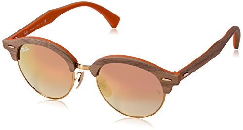 The Clubround Wood boasts layers of soft rubber layers and polished metal, and retro-inspired design evolves trendsetting Round and Clubmaster icons of authentic bohemian-cool Ray-Ban style.
